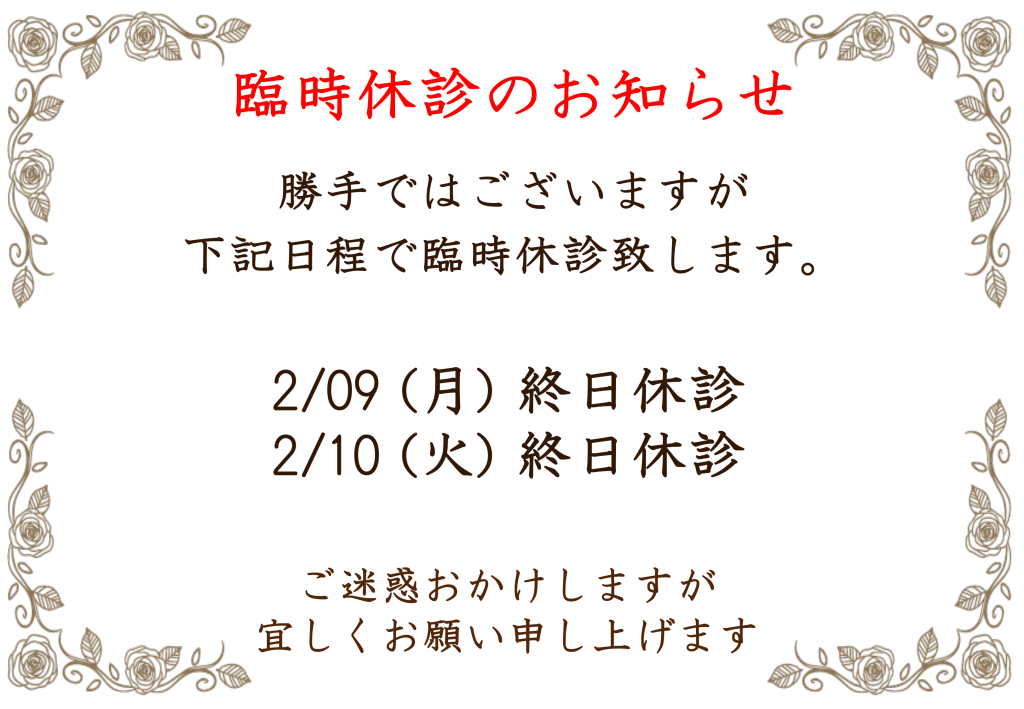 2/9(月)、2/10(火)臨時休診のお知らせ